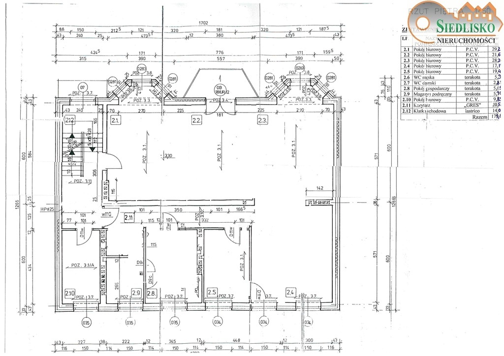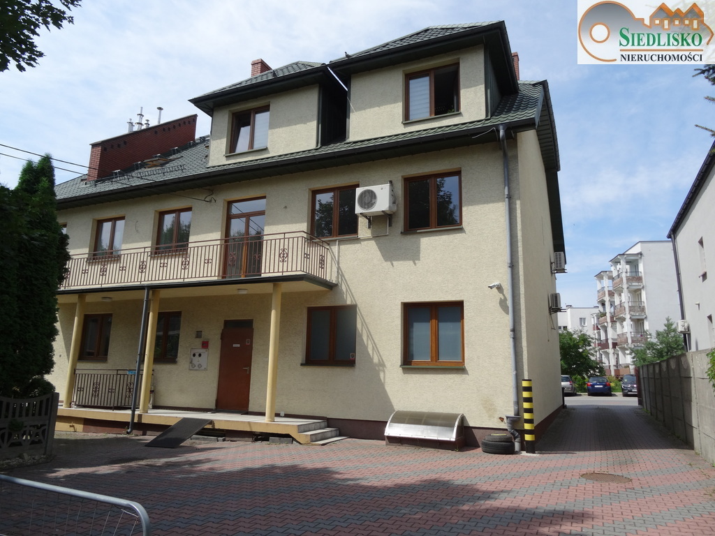 Budynek dwukondygnacyjny, w całości podpiwniczony, z użytkowym poddaszem, ocieplony i otynkowany. Dach o konstrukcji drewnianej, mansardowy, pokryty blacho-dachówką. Obiekt oddany do użytku w 2006 r. Piwnica wykorzystywana do prowadzenia działalności gospodarczej - posiada niezależne wejście - wys. 2,20 m - 2,50 m, powierzchnia 175,80 m kw 3 duże pomieszczenia + zaplecze socjalne magazyn, 2 toalety, biuro, korytarz. Parter usługowy - 2 niezależne wejścia (główne od ulicy i dla dostawy towarów od tyłu z rampą rozładowczą) - wys. 2,82 m, pow. 178 m kw sala sprzedaży, magazyn, biuro, toalety, pomieszczenie socjalne, korytarz. Piętro usługowe - dojście poprzez klatkę schodową, wysokość pomieszczeń 2,82 m - pow. 179 m kw pomieszczenie w kształcie litery L - otwarta przestrzeń ok. 100 m kw, pozostałą powierzchnię zajmują 2 pomieszczenia biurowe, toaleta i korytarz + dodatkowe pomieszczenie socjalno-magazynowe z niezależnym wejściem z klatki schodowej, 2 balkony. Poddasze z funkcją mieszkalną obecnie wynajęte na biuro - pow. 145 m kw 5 pomieszczeń biurowych, toaleta, pomieszczenie socjalne, korytarz. Media budynek wyposażony w instalację elektryczną (siła), wodno-kanalizacyjną, gazową, alarmową, telefoniczną, zainstalowane klimatyzatory. Każda kondygnacja ogrzewana indywidualnie za pomocą pieca gazowego (piece instalowane w 2019 r.) - oddzielne liczniki gazowe, oddzielne liczniki na prąd dla każdej kondygnacji, woda rozliczana wg wskazań podliczników. Cały teren wokół budynku wyłożony kostką, przed budynkiem od strony ulicy znajduje się parking dla najemców, w bezpośrednim sąsiedztwie zabudowa zarówno o przeznaczeniu usługowym jak i mieszkalnym. Obecnie piwnica, parter i poddasze są wynajęte. Bardzo dobry dojazd do głównych szlaków komunikacyjnych. Dzięki obecnemu układowi otwiera się bardzo szeroki wachlarz możliwości wykorzystania nieruchomości. Stan prawny uregulowany. Dodatkowe informacje do uzyskania pod nr tel. 603-413-413 Barbara Stańczyk. Świadectwo charakterystyki energetycznej - zapotrzebowanie na energię EU - użytkową (kWh/m2*rok) 176.23 EK - końcową (kWh/m2*rok) 272.00 EP - nieodnawialną energię pierwotną (kWh/m2*rok) 350.82 EC02 - Wielkość emisji CO2 (t C02/m2*rok) 0.06 UOZE - Udział odnawialnych źródeł energii w zapotrzebowaniu na energię końcową [%] 0.00 Informacje dotyczące opisu nieruchomości podane są przez właściciela, mają charakter wyłącznie informacyjny i mogą podlegać aktualizacji. Oferta dotycząca nieruchomości stanowi zaproszenie do rokowań zgodnie z art. 71 Kodeksu Cywilnego i nie stanowi oferty określonej w art. 66 i następnych KC.
